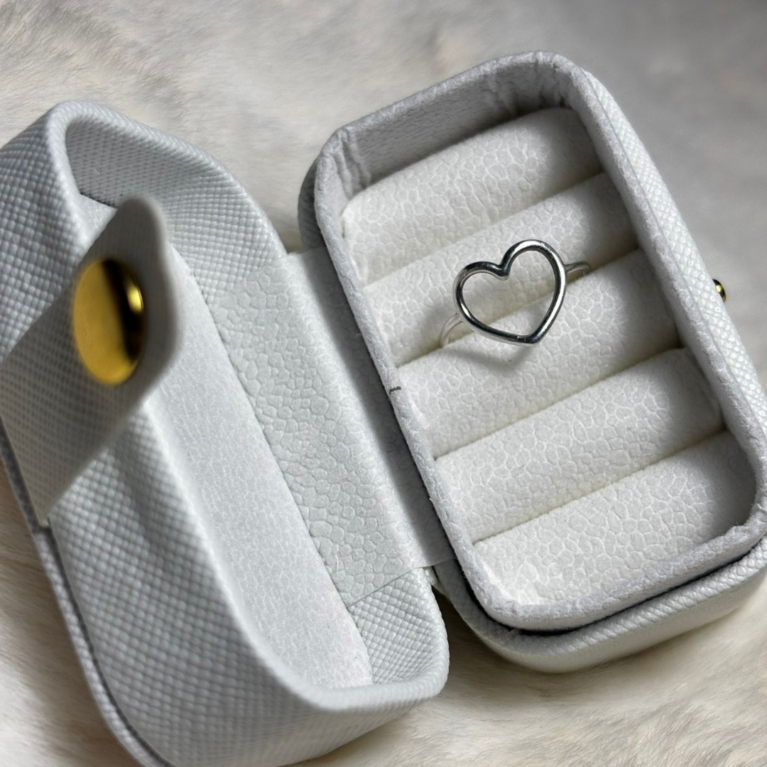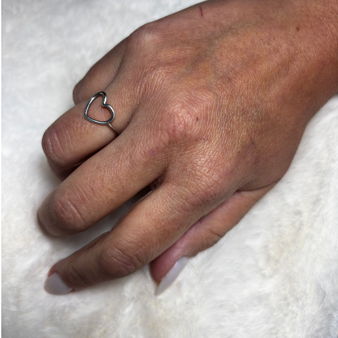 É uma joia leve e delicada, perfeita para o uso diário, servindo como um amuleto subtil de afeto. O seu design clean e contínuo torna-o ideal para ser usado sozinho ou para complementar um *stacking* de anéis mais robustos, adicionando um toque romântico e atemporal.