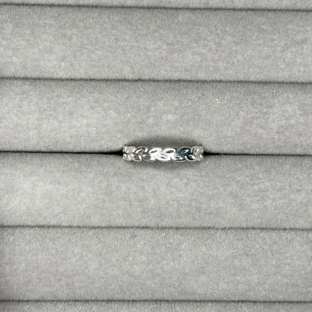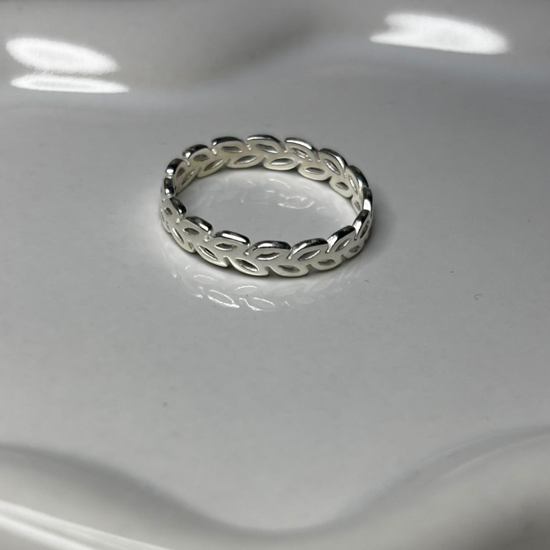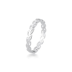 O Anel Folhas de Prata é uma peça encantadora que celebra a beleza natural com um toque de *design* moderno. O seu aro é esculpido com um detalhe de **ramos de folhas vazadas** em Prata 925 legítima, que garantem leveza visual e respirabilidade.