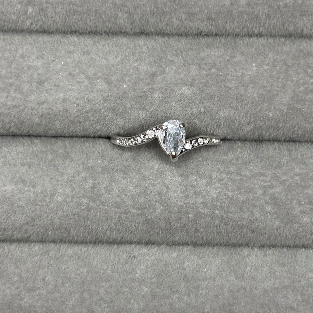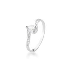 O Anel Encanto celebra a união da textura e do foco. O seu design apresenta um **aro delicadamente torcido** em Prata 925 legítima que culmina numa elegante **gota cravejada com Zircónias**, o ponto focal da peça.