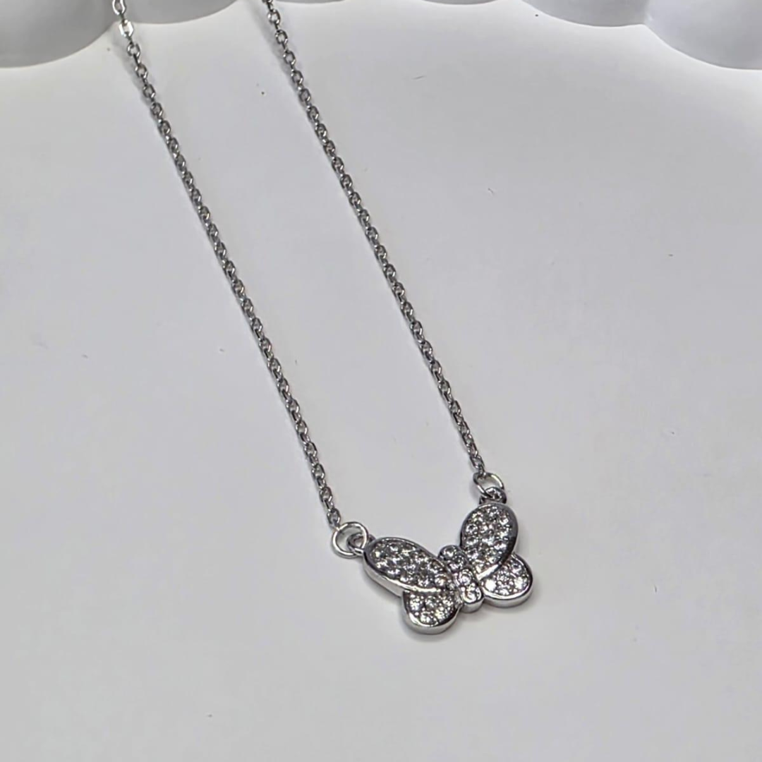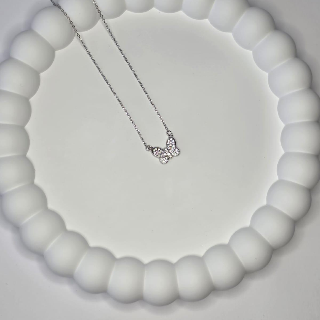 O Colar Borboleta Cravejada é um talismã de transformação. Esculpido em Prata 925 legítima, o delicado pendente em formato de borboleta é inteiramente cravejado com Zircónias, criando uma superfície luminosa que capta a luz em todos os ângulos.